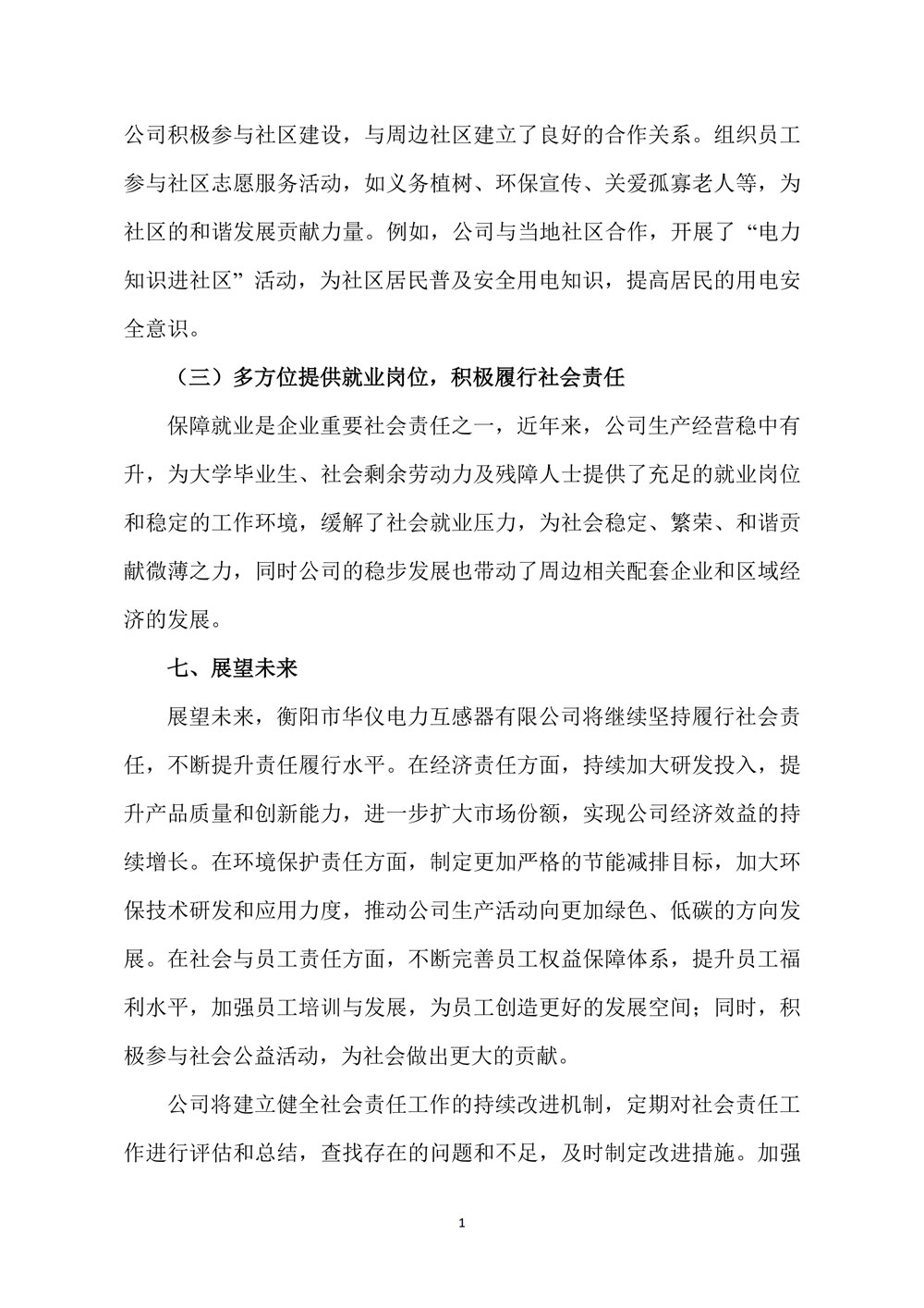 衡陽(yáng)市華儀電力互感器有限公司2024年度企業(yè)社會(huì)責(zé)任報(bào)告