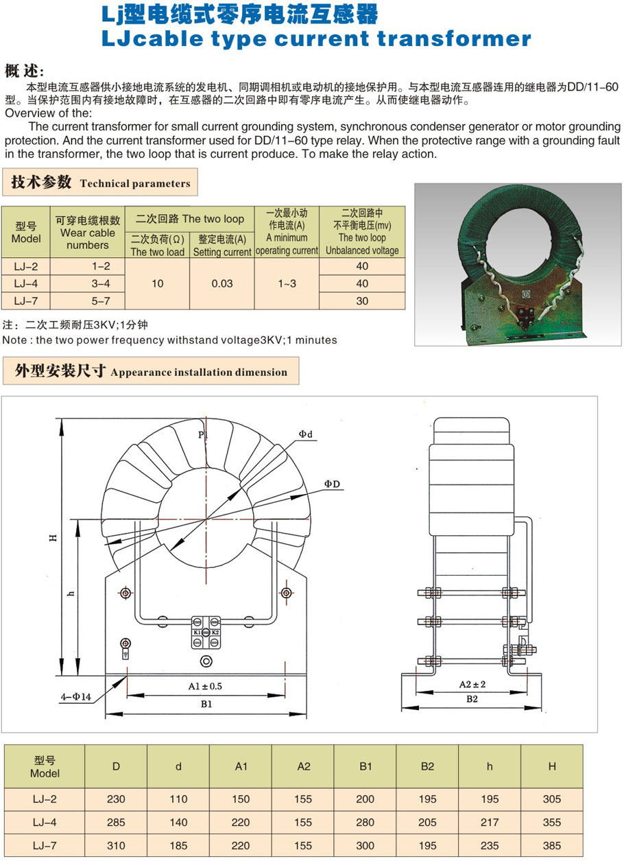LJ型電纜式零序電流互感器
